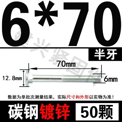 - Specification model: M6*70 (50 pcs) half thread