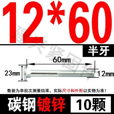 - Specification model: M12*60 (10 pcs) half thread