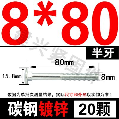 - Specification model: M8*80(20 pcs) half thread