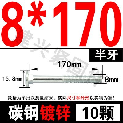 - Specification model: M10*170 (10 pcs) half thread