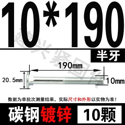 - Specification model: M10*190 (10 pcs) half thread