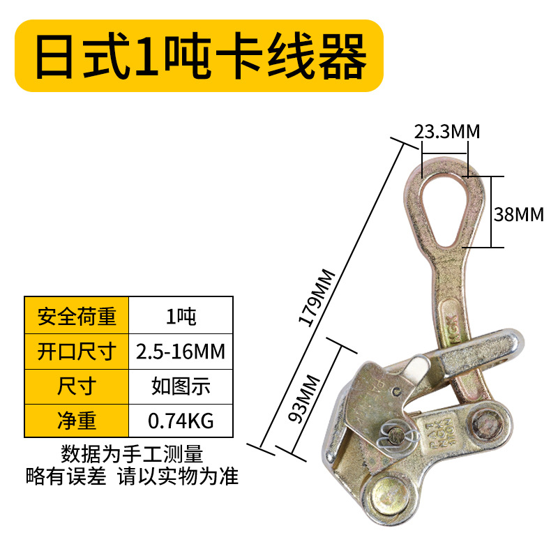 - Model: Japanese style 1-ton double hook+1-ton wire clamp