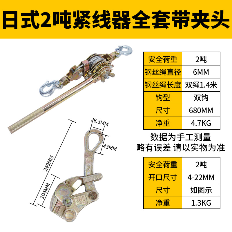 - Model: Japanese style 2-ton double hook+2-ton wire clamp