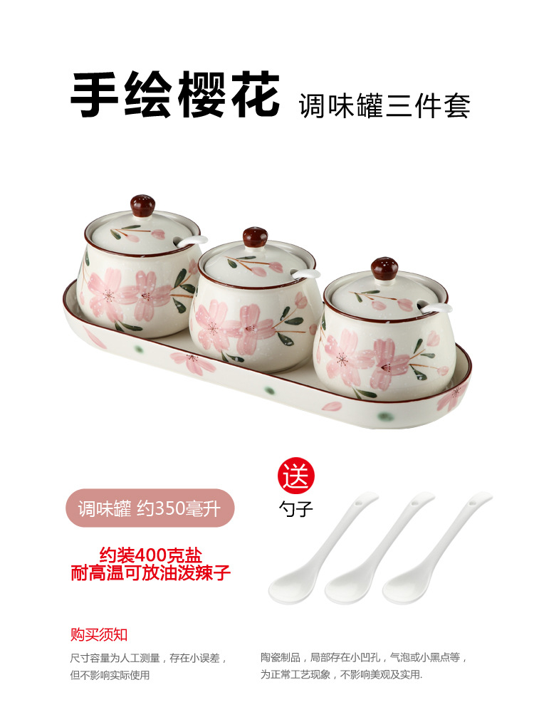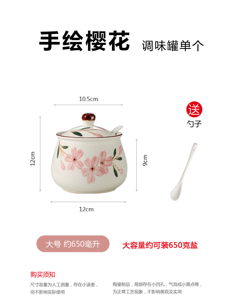 - 規格:單個大號櫻花調味罐(蓋無開孔)送勺