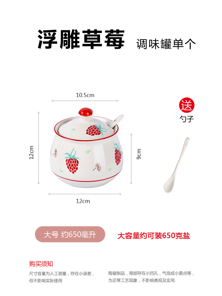 - 規格:單個大號草莓調味罐+送勺釉下彩繪工藝