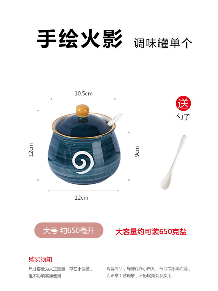 - 規格:單個大號火影調味罐+送勺送運費險+破損賠
