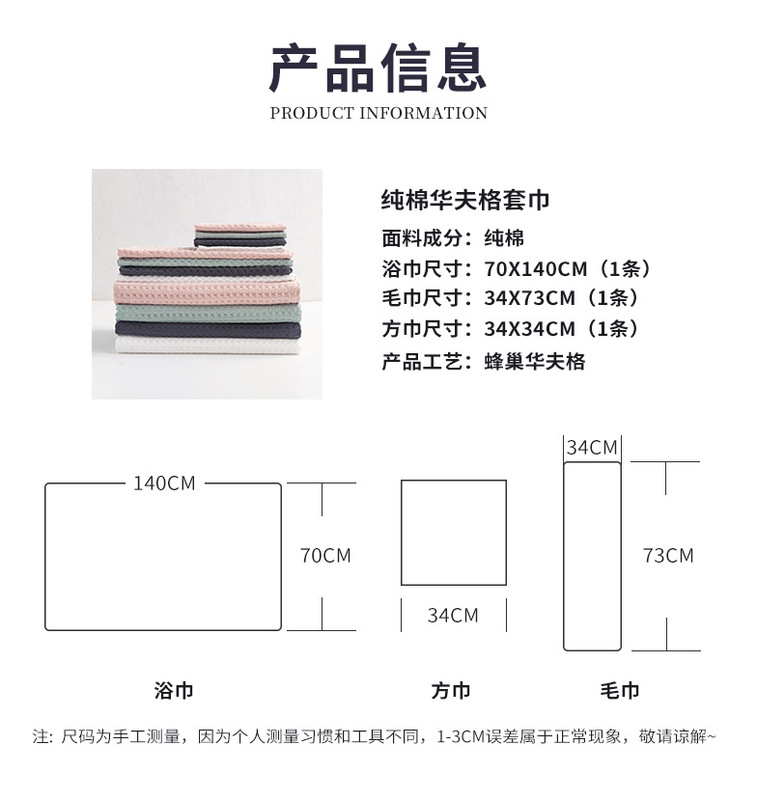- Specifications (length*width cm): 34x35 (square towel)