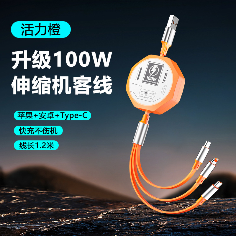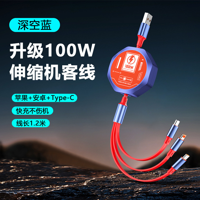 - 型號:100W伸縮一拖三1.2米【裸線】-炫酷黑