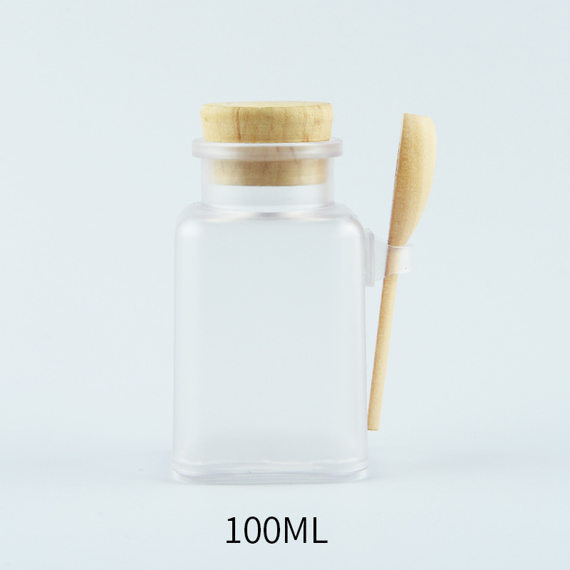 - Specification:Cork Stopper + Wooden Spoon + Square Bath Salt Bottle