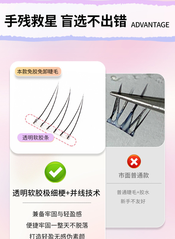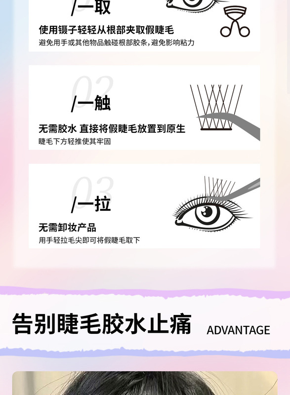 - 下睫毛:下睫毛免膠