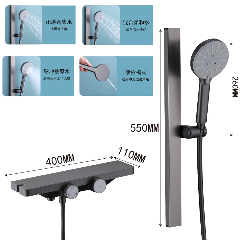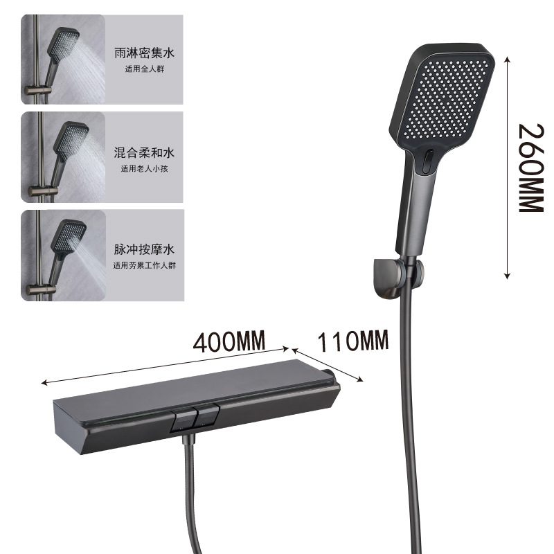 - Specification: R19334Q Gun Gray Two-function Thermostatic Shower Head