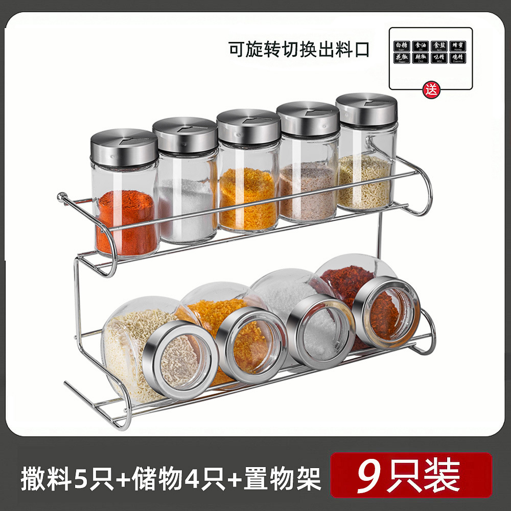 - Specification: [9-Piece Spice Set] 5 Small Bottles + 4 Storage Boxes + Shelf (Includes Labels)