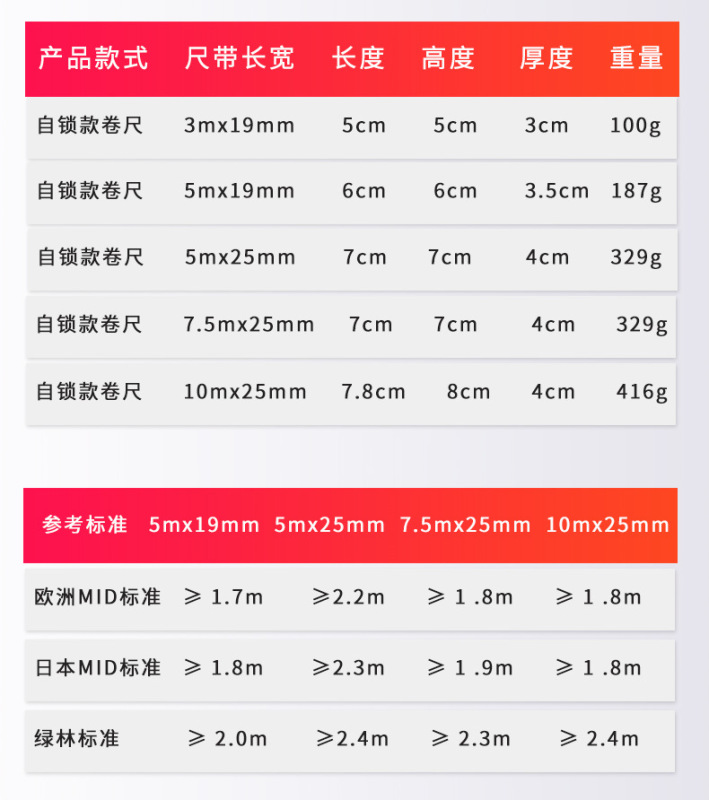 - Gauge Type: Tape Measure