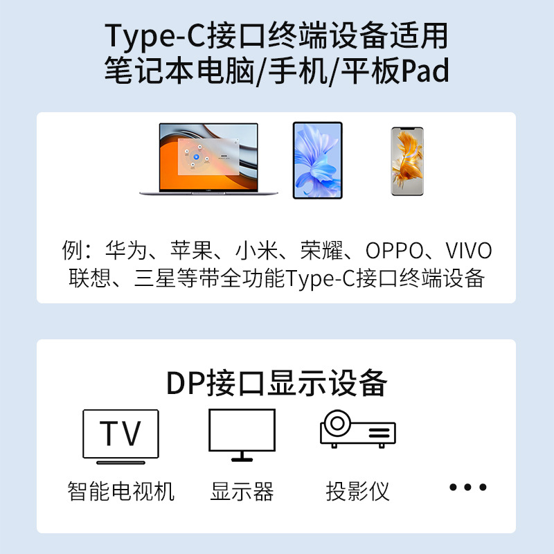 - Screen Mirroring Cable: Type-C to DP
