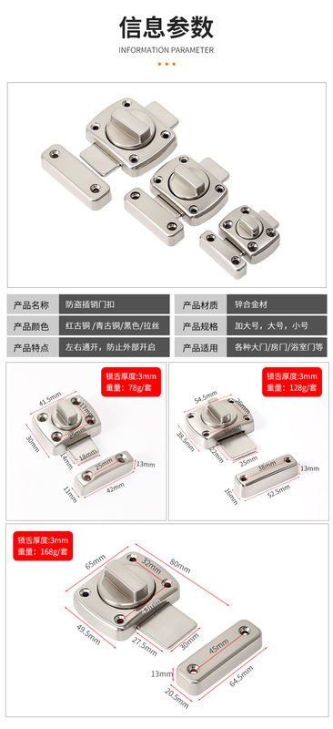 - 規格:大號鋅合金插銷-拉絲