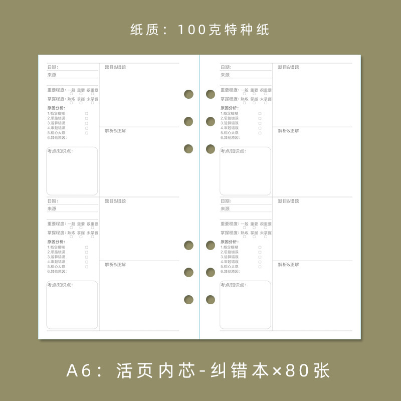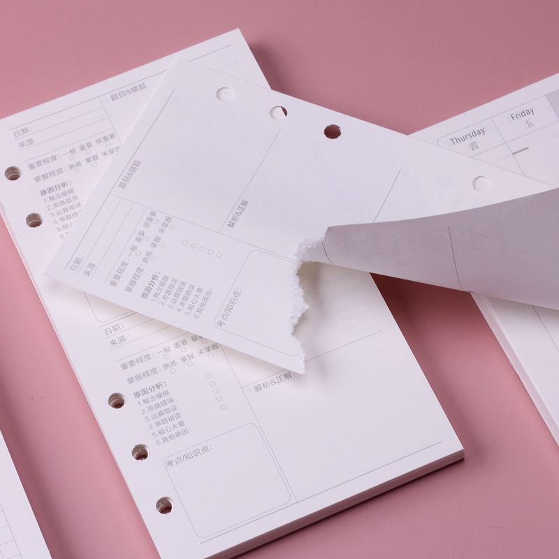 - Applicable categories: loose-leaf replacement core