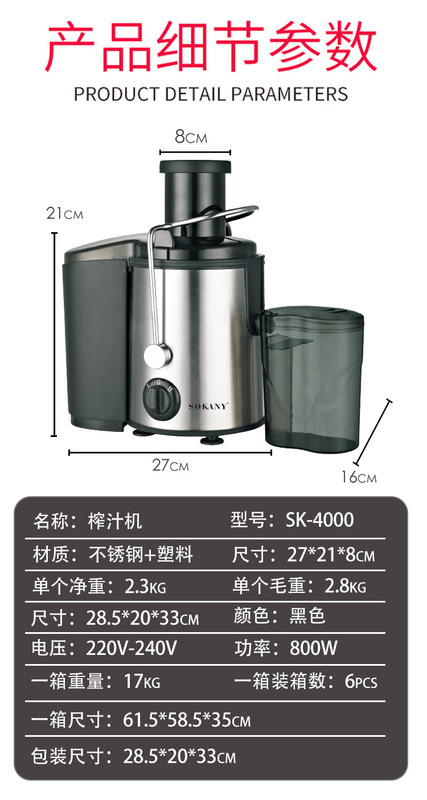 - Fruit pulp waste box capacity: less than 500ml (including 500ml)