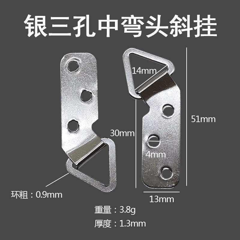 - Specification: Silver Three-Hole Middle Curved Head Oblique Hanger 200 pcs/Bag