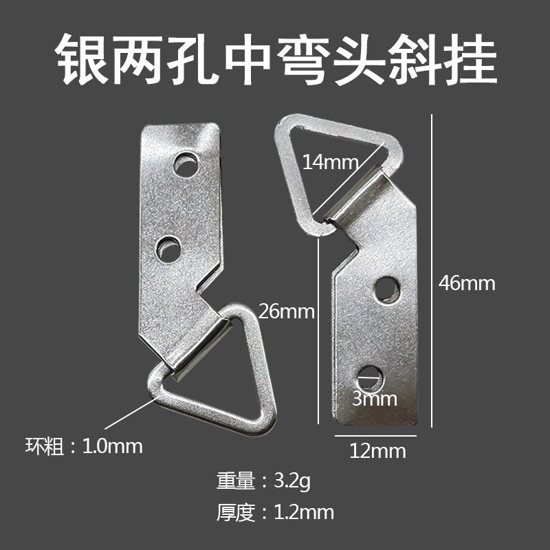 - Specification: Silver Two-Hole Middle Curved Head Oblique Hanger 200 pcs/Bag