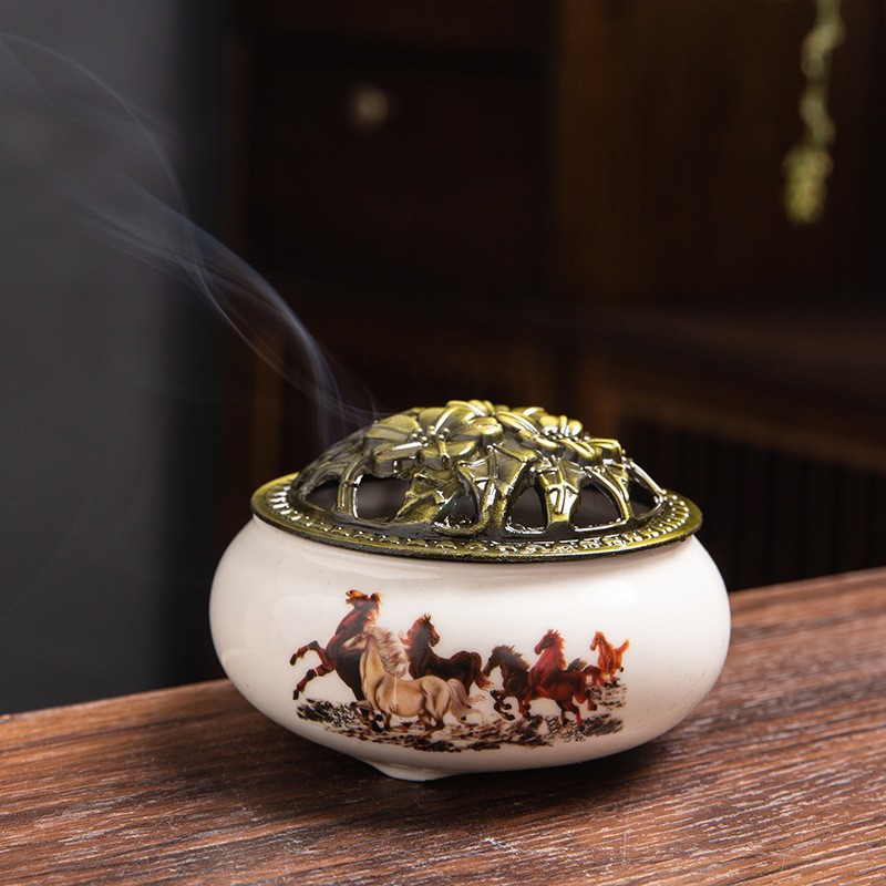 - Specifications: White porcelain eight-horse incense burner - comes with fireproof cotton small incense insert