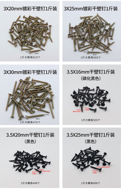 - 產品規格:3.5X16mm銀色干壁釘1斤裝