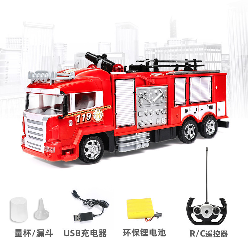 - Features: remote control fire truck that can spray water