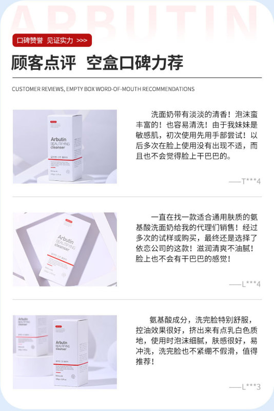 - Product Specifications: Arbutin Facial Cleanser 100g (with Chinese label)