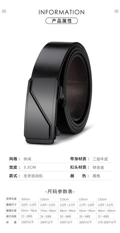 - Design details: toothless inner wear automatic buckle