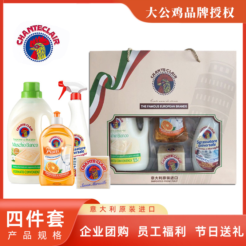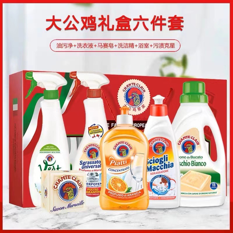 - Specification Type: Rooster Four-Piece Red Gift Set (Dish Soap 500ml + Grease Remover 600ml + Marseille Soap 300g + Laundry Detergent 1500ml)