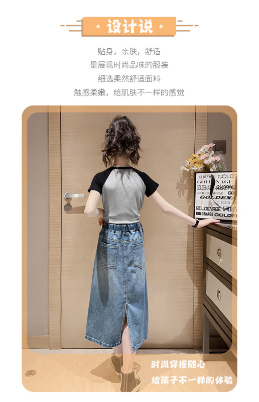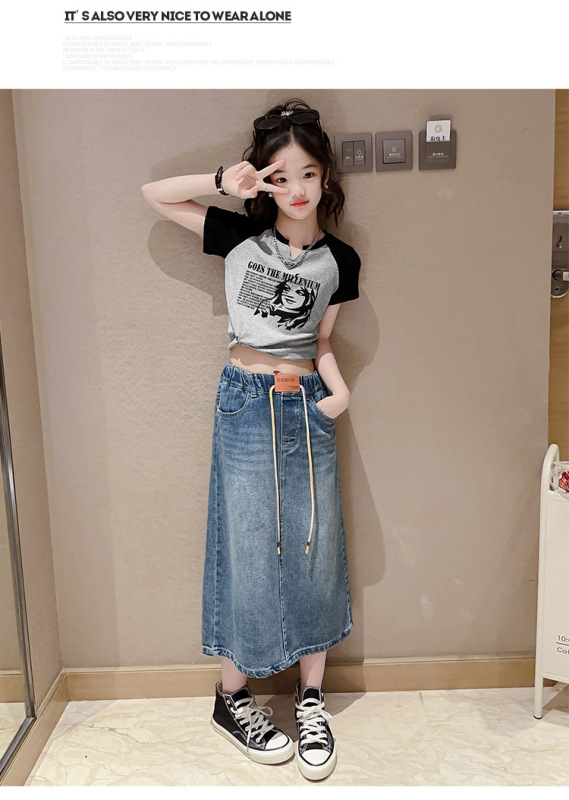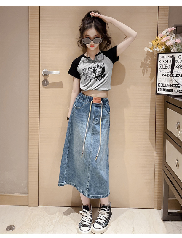 - Skirt style: Denim skirt