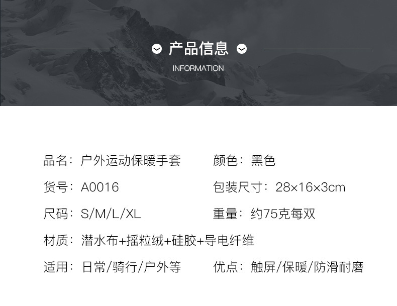 - 款式:連指手套