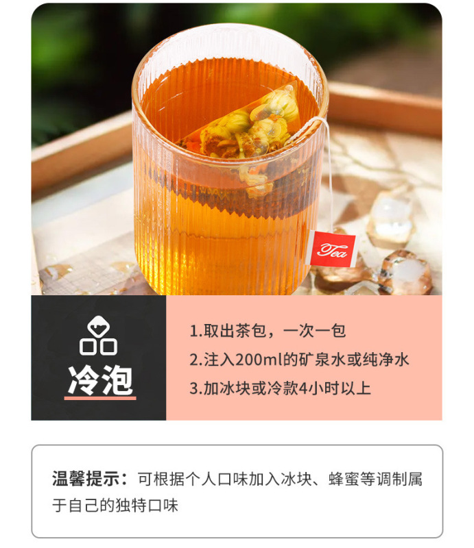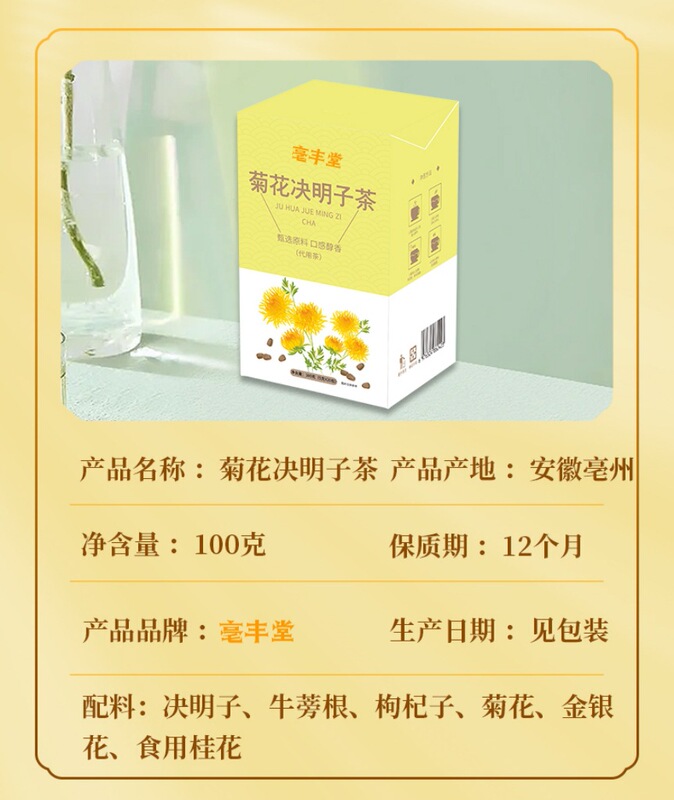 - Raw materials and ingredients: Cassia seeds, burdock root, chrysanthemum, wolfberry, honeysuckle, edible osmanthus