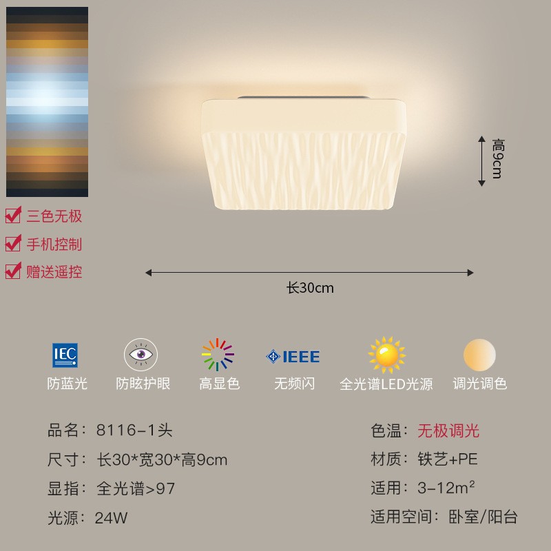 - Light Source Power: Full Spectrum, White Diameter 90*60CM - 无极调光