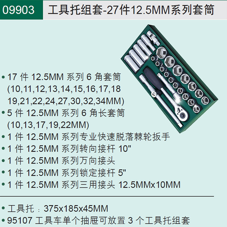 - Specifications and models: 9903 tool holder set-27 pieces 12.5MM series sockets
