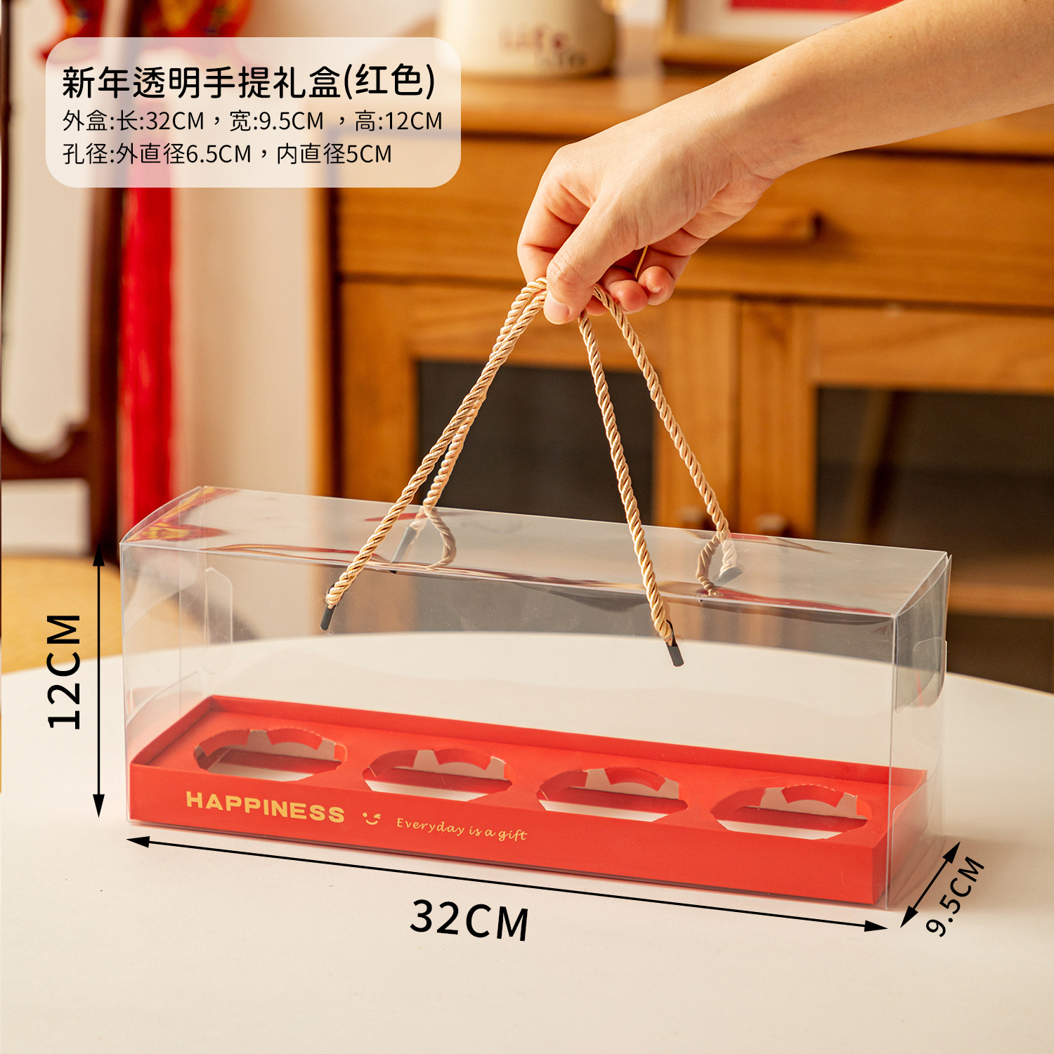 - Specification: Transparent Paper Cup Box (4 Pieces, Red) 5 Sets
