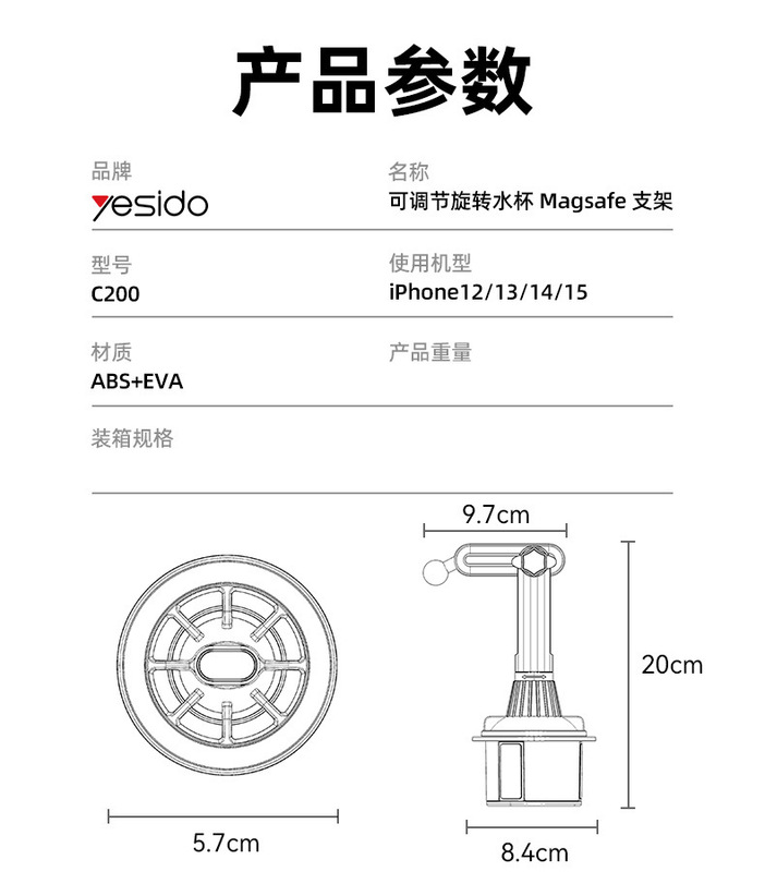 - Style: C200 (water cup holder)