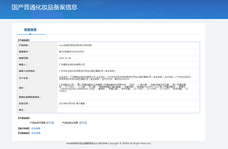 - 非特化妝品備案證號:粵G妝網備字2019263771