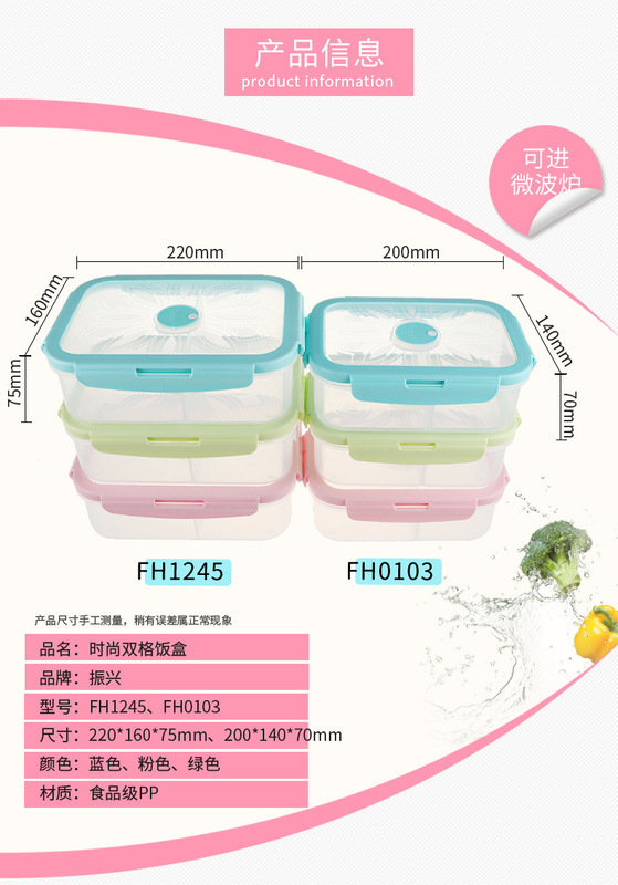 - Specification: Fashion Dual-Compartment Lunch Box FH0103 (900ml)