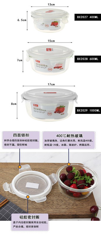- 規格:圓形玻璃保鮮盒BX2027(400ml)