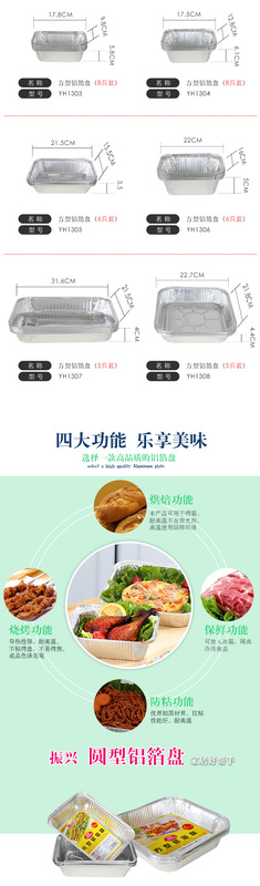 - Specifications: Long aluminum foil tray YH1306 (220×160×50mm×6 pieces)