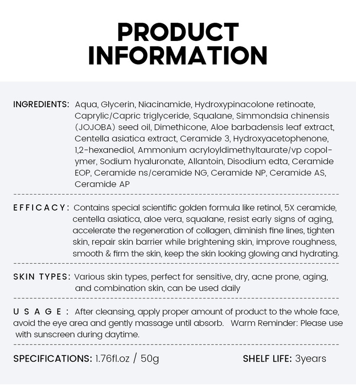 - 產品規格:視黃醇睡眠面膜50g(跨境專供)