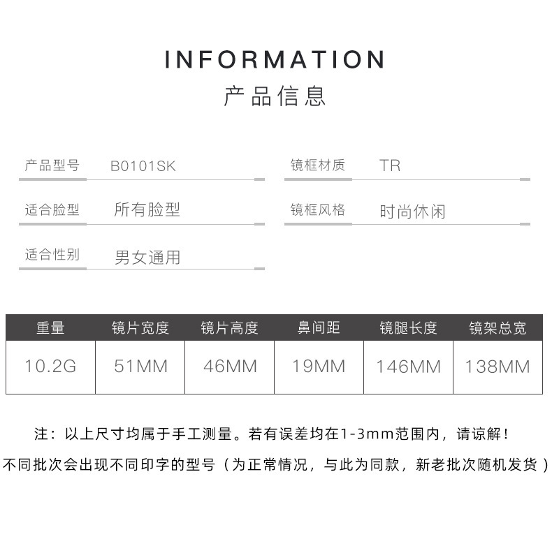 - 鏡架材質:TR90
