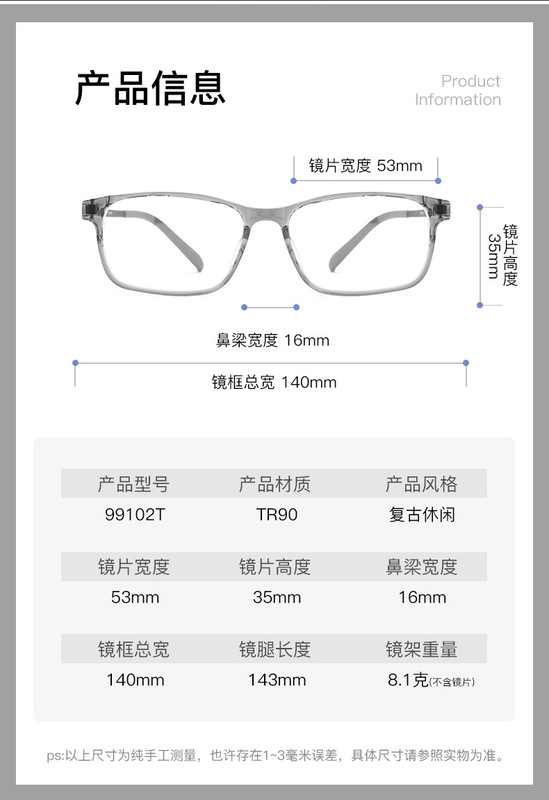 - 眼鏡款式:方框