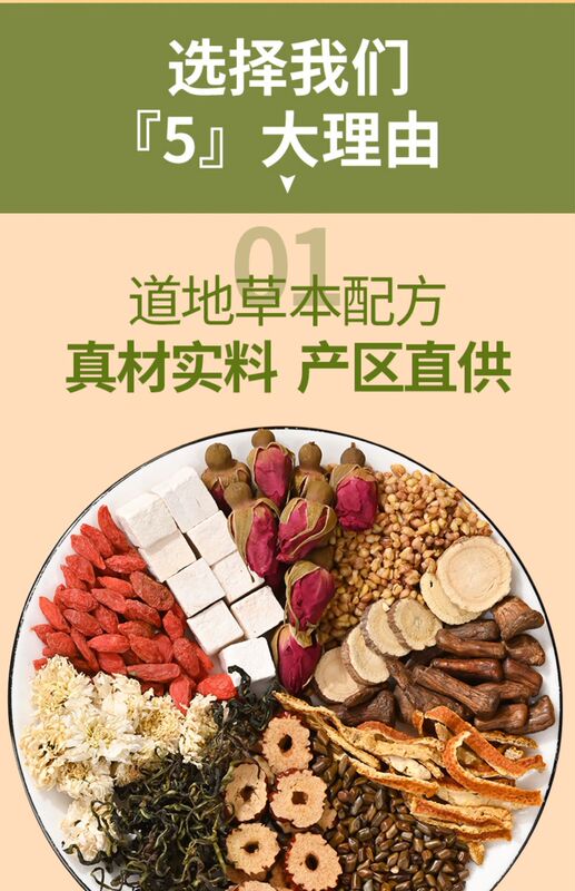 - Raw materials and ingredients: Cassia seeds, tangerine peel, licorice, Poria...