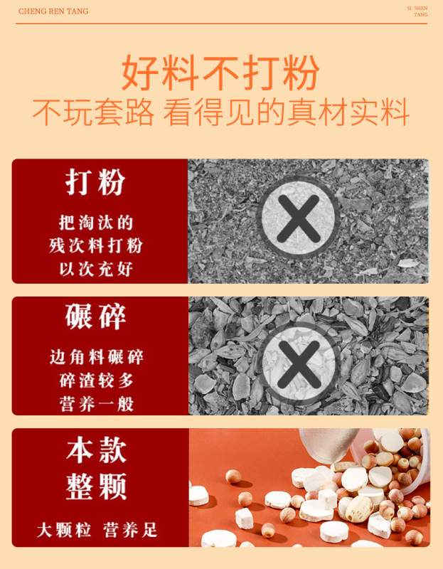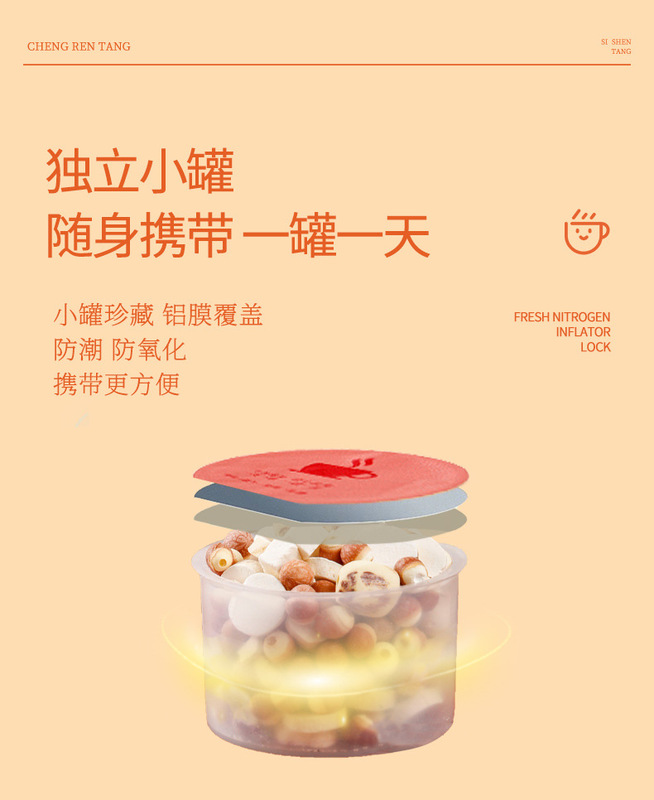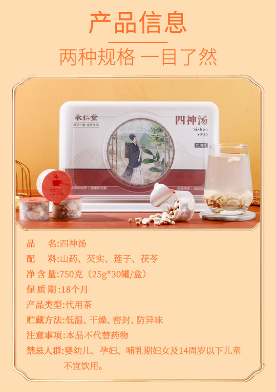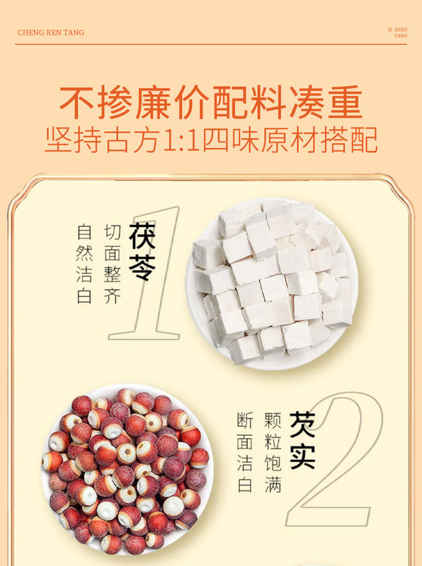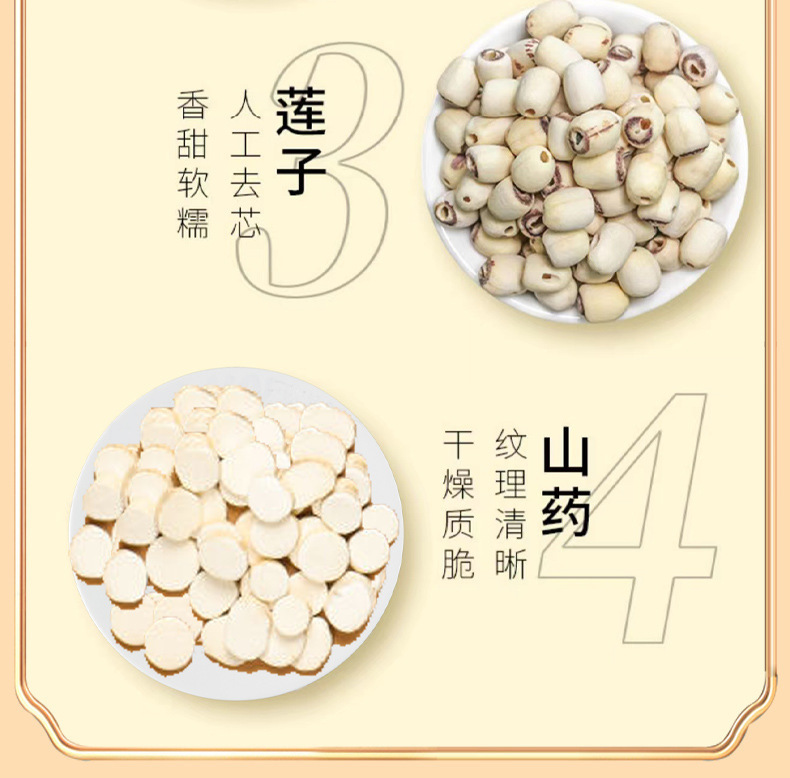 - Raw materials and ingredients: yam, Gorgon fruit, lotus seeds, Poria cocos