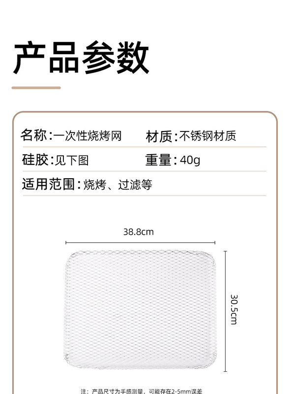- 規格(長*寬*高):一次性燒烤網10張+中性郵購盒