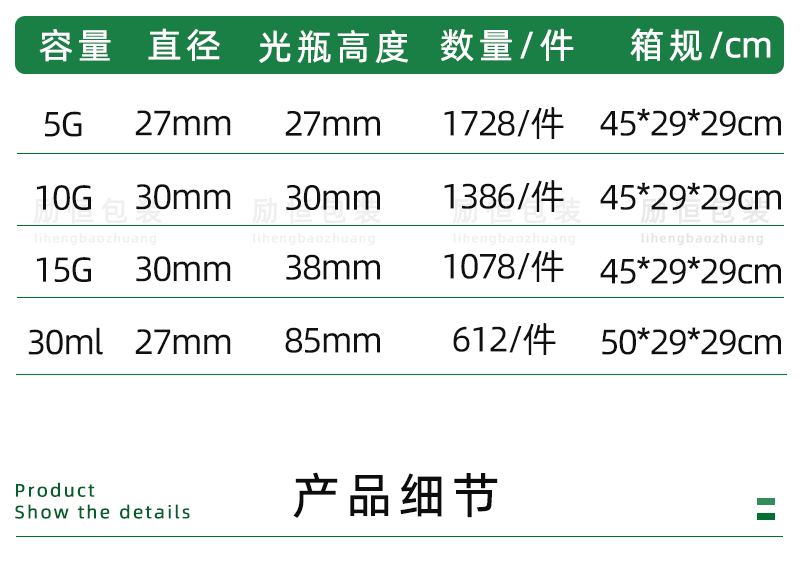 - 容量:10g透明瓶