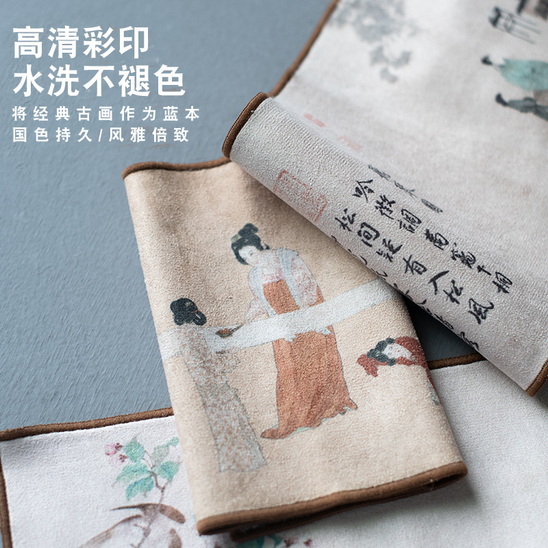- 規格:聽琴圖-棉絨茶巾