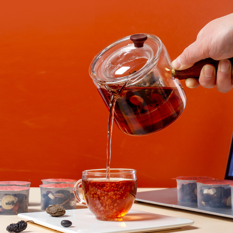 - 原料與配料:黑豆、烏梅、黃精、黑芝麻、茯苓、桑葚子、枸杞、甘草、山藥、橘皮、芡實、人參(五年以下人工種植)、覆盆