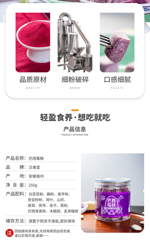 - Packaging specifications: Acai berry cake 250g